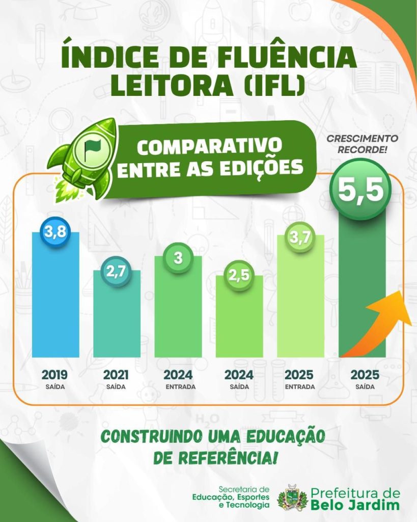 Esses avanços representam o resultado direto do investimento e da prioridade que a gestão municipal tem dado à educação. Com ações voltadas para a melhoria do ensino, valorização dos profissionais e acompanhamento do aprendizado dos estudantes, Belo Jardim segue fortalecendo sua rede de ensino e construindo uma educação pública cada vez mais forte.