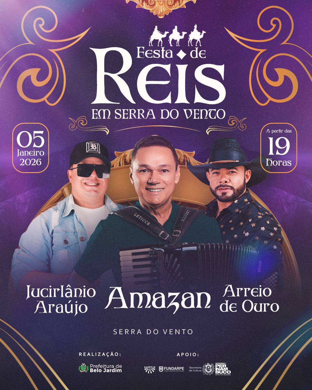 A tradicional Festa de Reis de Serra do Vento, distrito de Belo Jardim, chega à edição de 2026 com a confirmação de uma nova atração: a banda Arreio de Ouro, destaque no cenário regional e conhecida por músicas que marcaram gerações. O evento acontece no dia 5 de janeiro de 2026, a partir das 19h,