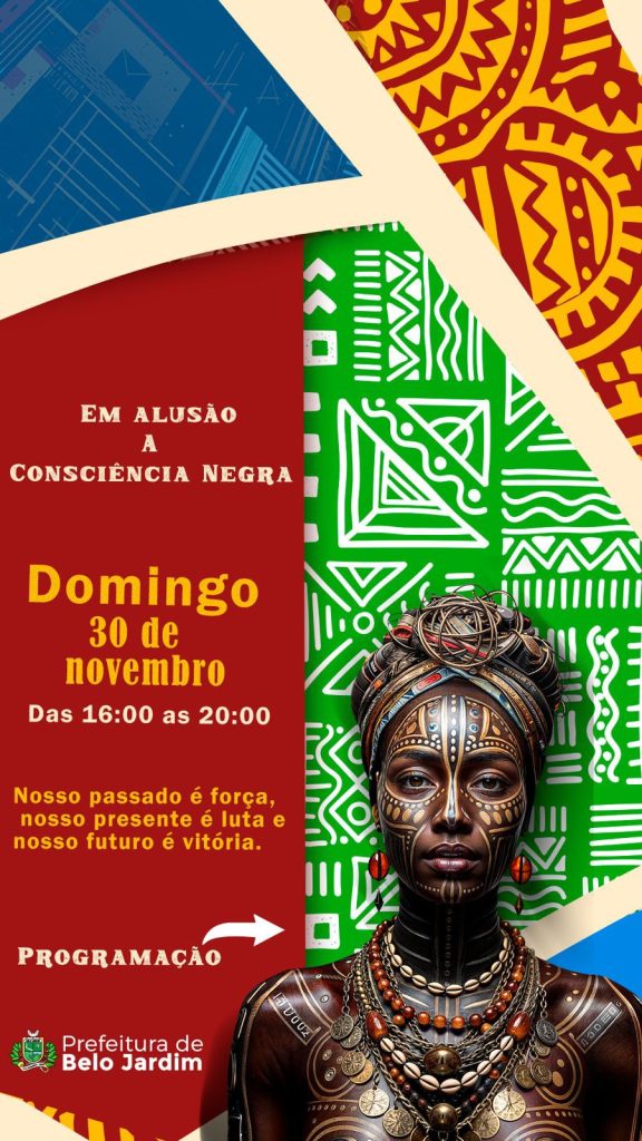 Belo Jardim promoverá uma programação especial em alusão ao Dia da Consciência Negra, neste domingo (30), às 16h, no Calçadão da Cultura Ivanildo Ridomarques. Organizado pela Prefeitura, por meio da Secretaria de Cultura, Turismo e Empreendedorismo, o evento reunirá manifestações culturais, debates e atividades que destacam a identidade, a ancestralidade e a luta do povo negro. A concentração para o cortejo será a partir das 15h, na Praça da Cultura Desembargador João Paes, no Centro.