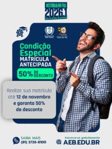 Quem efetivar a matrícula neste período garante 50% de desconto na taxa de matrícula. Além disso, os ingressantes podem se inscrever no PROAME, obtendo 50% de desconto nas mensalidades até a conclusão do curso.