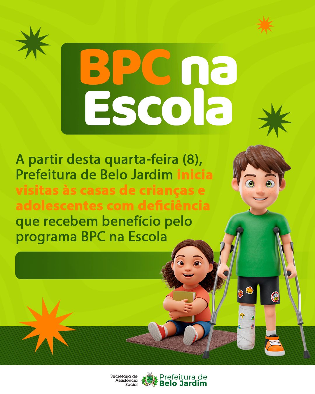 Se você tem criança ou adolescente em idade escolar com algum tipo de deficiência e que recebe o Benefício de Prestação Continuada (BPC), fique atento, pois a partir desta quarta-feira (8) a equipe da Secretaria de Assistência Social da Prefeitura estará visitando sua casa para aplicar um formulário em formato de entrevista. Essa ação faz