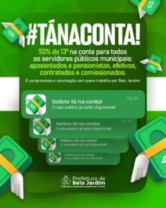 A Prefeitura de Belo Jardim realizou, de forma antecipada, o pagamento de 50% do décimo terceiro salário dos servidores públicos municipais, reforçando o compromisso com a valorização do funcionalismo e com o fortalecimento da economia do município.