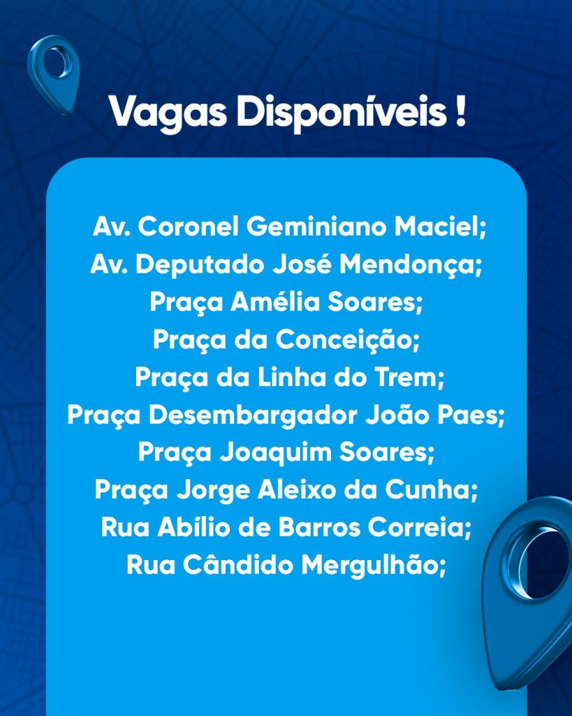 A implantação abrangerá pontos estratégicos distribuídos pela região central da cidade, contemplando avenidas, praças, ruas e travessas com grande fluxo de veículos. O sistema trará benefícios diretos à população, como maior rotatividade de vagas, estímulo ao comércio local, redução de congestionamentos, democratização do espaço urbano e mais eficiência na circulação diária.